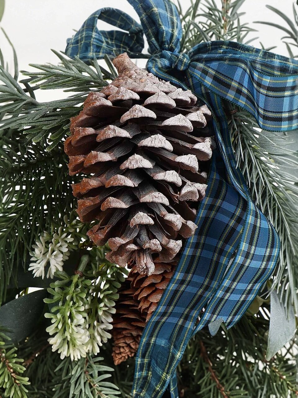 - Композиция изготовлена из натуральных шишек и веточек с искусственными иголками, визуально неотличимых от настоящих.