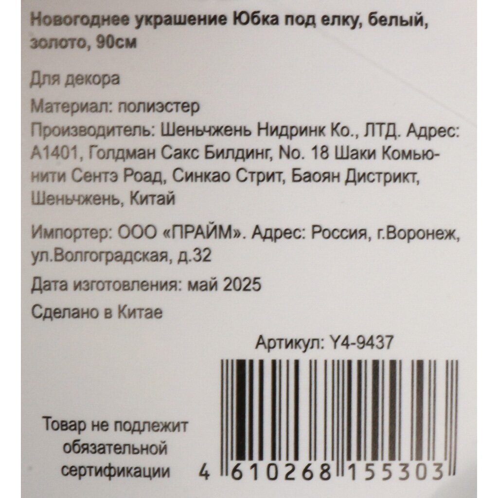 Вы можете приобрести «Новогоднее украшение 90 см, белый, золото, Юбка под елку, Y4-9437» и другие товары в нашем интернет-магазине в Орле по низким ценам и с бесплатным самовывозом.