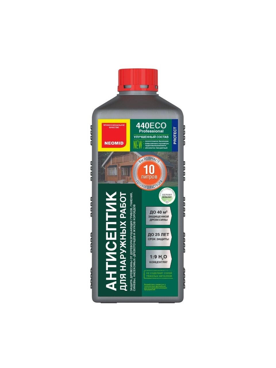 Защитить поверхности, не требующие обработки, от попадания средства. Очистить обрабатываемую поверхность от грязи, пыли, отслоений старой краски и т.п. Если поверхность древесины поражена деревоокрашивающими грибами (синевой), рекомендуется первоначальная обработка отбеливателем, дезинфицирующим и возвращающим древесине естественный цвет. При нанесении в некоторых случаях возможно тонирование древесины, обусловленное ее сортностью и породой. NEOMID 440 Eco – концентрат. Перед применением, концентрат взболтать, затем развести водой в соотношении 1:9. Возможны два способа обработки древесины: