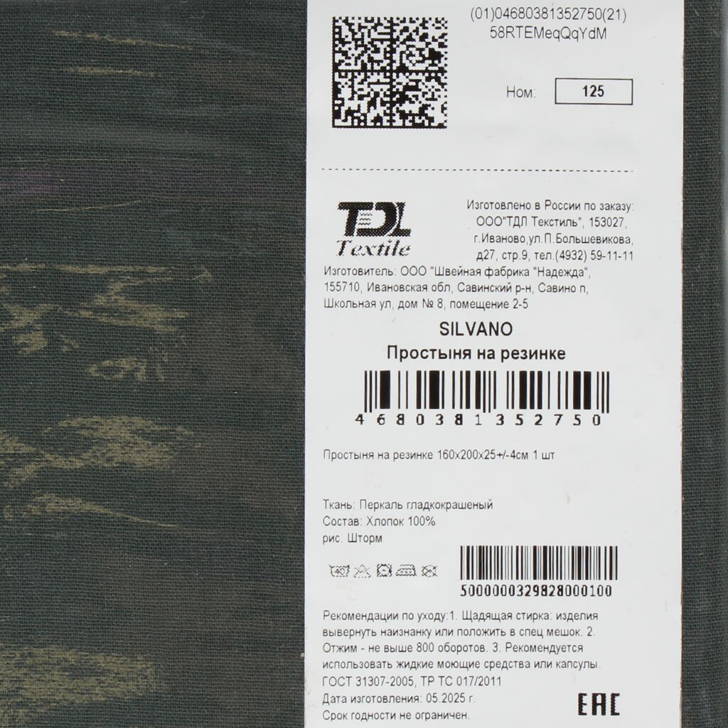 Размер — 160х200х25 см, материал — 100% хлопок (перкаль), цвет — черный, тип — на резинке, подходит для взрослых, коллекция Silvano Шторм.