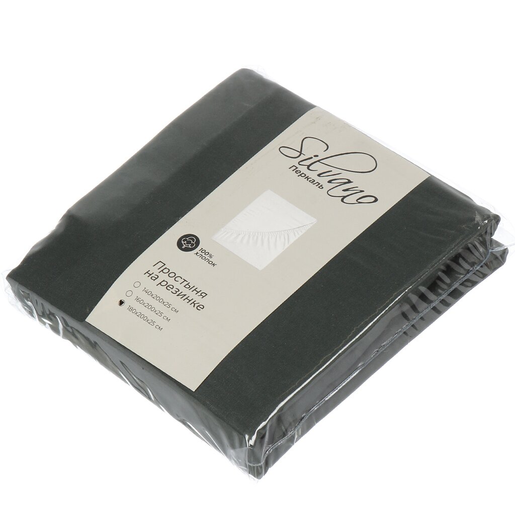 Простыня на резинке Silvano Шторм 180х200х25 см — 100% хлопок перкаль, долговечность и комфорт для вашего сна. Идеальный выбор для дома и подарка.