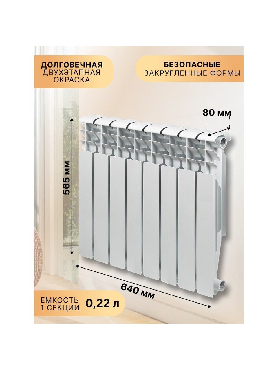 - Теплоотдача 1 секции: 118 Вт.