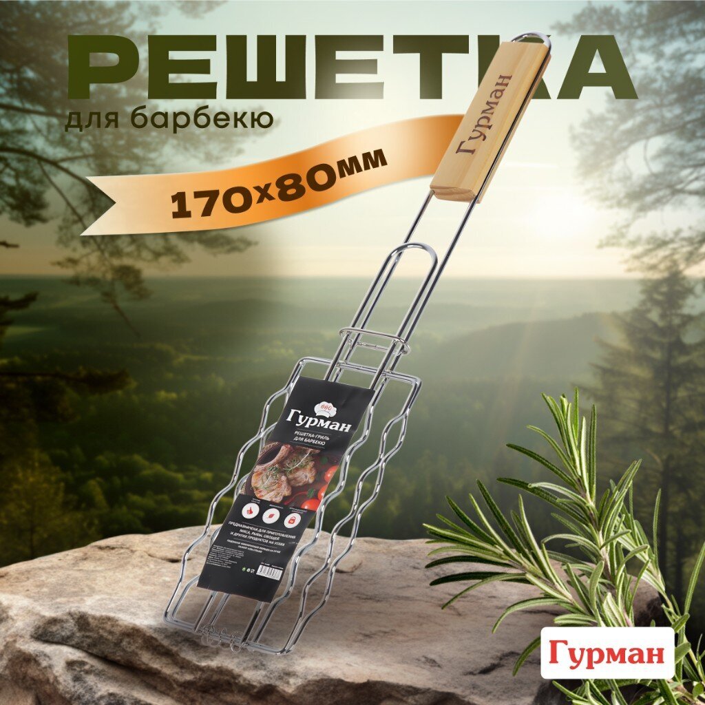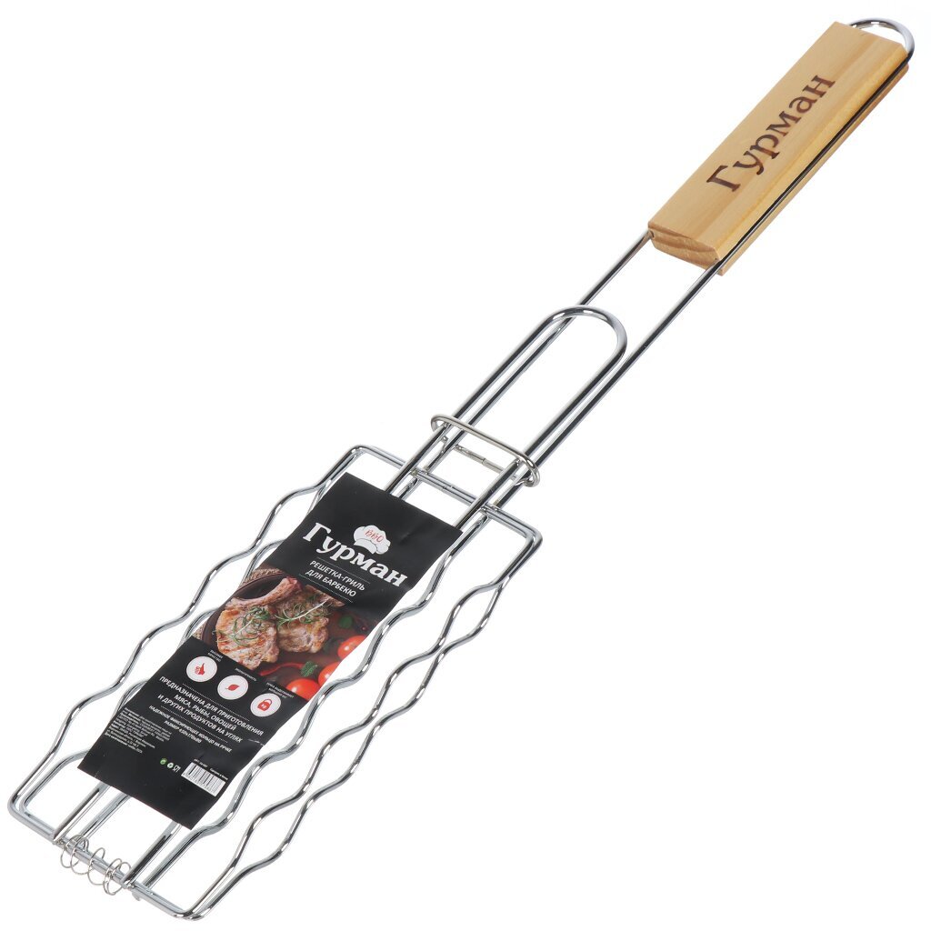 Решетка для барбекю Гурман повысит уровень Вашего комфорта на природе. Длинная ручка обеспечит безопасное взаимодействие с продуктами на огне и не позволит обжечься. Компактный размер позволит Вам удобно разместить аксессуар в шкафу для кухонной утвари или в багажнике автомобиля.