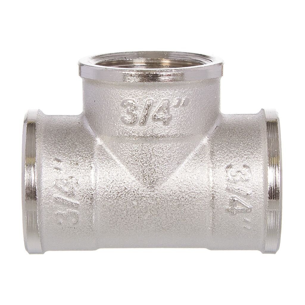 У этого тройника все три выхода с внутренней (женской) резьбой, что удобно для стандартных соединений без переходников.