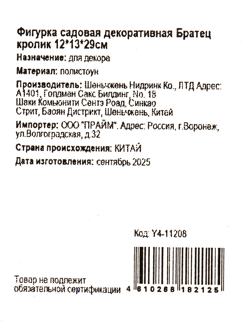 Вы можете приобрести «Фигурка садовая декоративная Братец кролик, 12х13х29 см, полистоун, Y4-11208» и другие товары в нашем интернет-магазине в Астрахани по низким ценам и с бесплатным самовывозом.