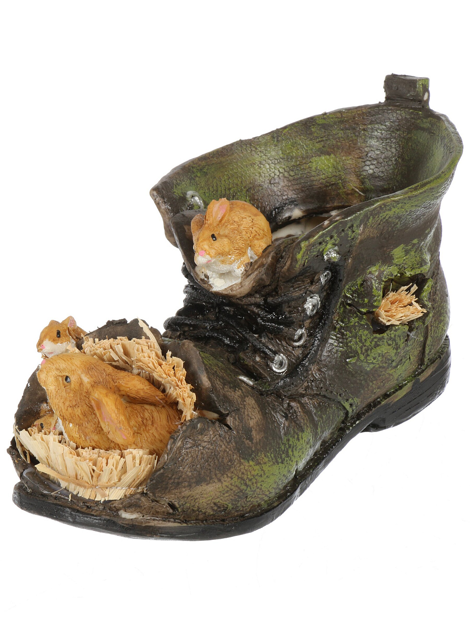 Декоративная садовая фигурка-кашпо «Башмак» из полистоуна 21х11х22 см: стильный акцент для дачи, устойчивый к погоде, идеально для цветов и подарков.