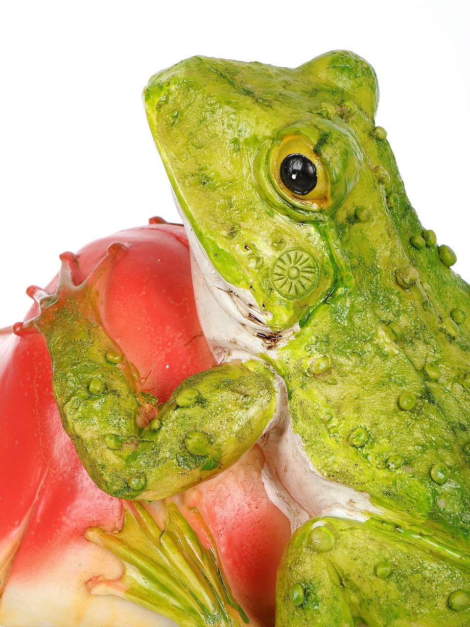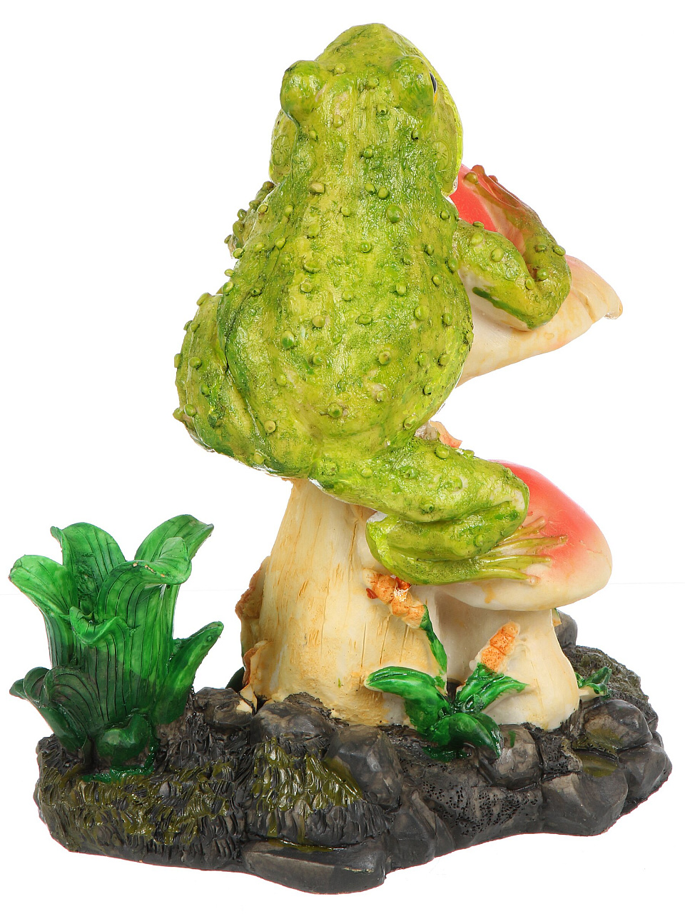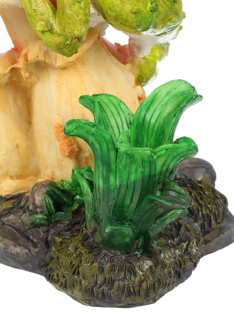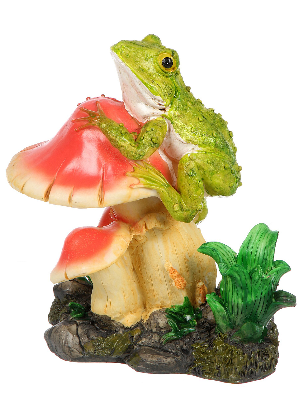 - Уникальный дизайн: реалистичная лягушка с грибом, создающая атмосферу сказочного сада