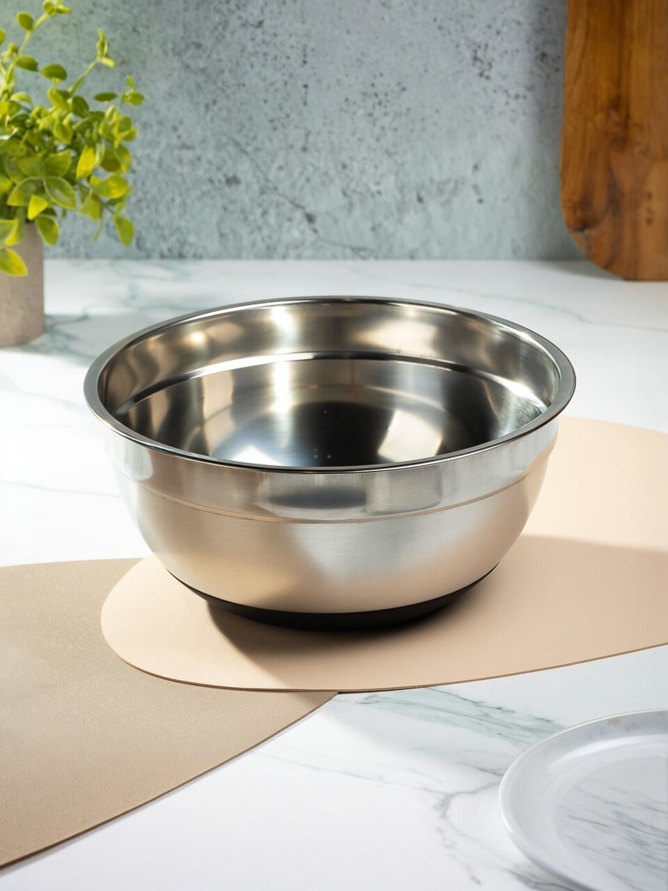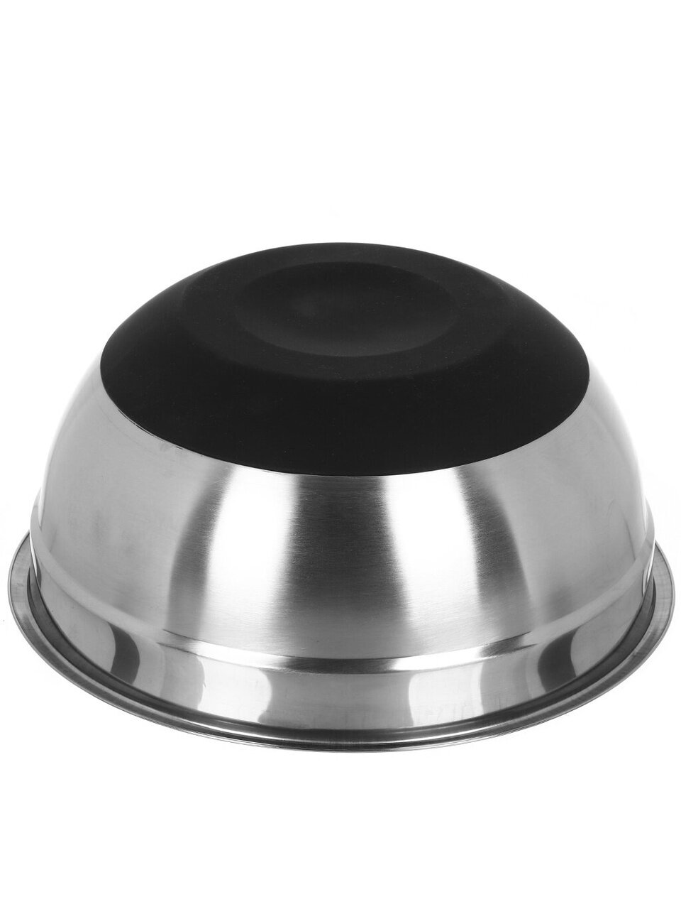 Салатник из нержавеющей стали 28х10 см с силиконовым дном — универсальное решение для кухни: не скользит, легко моется, оптимален для больших порций.