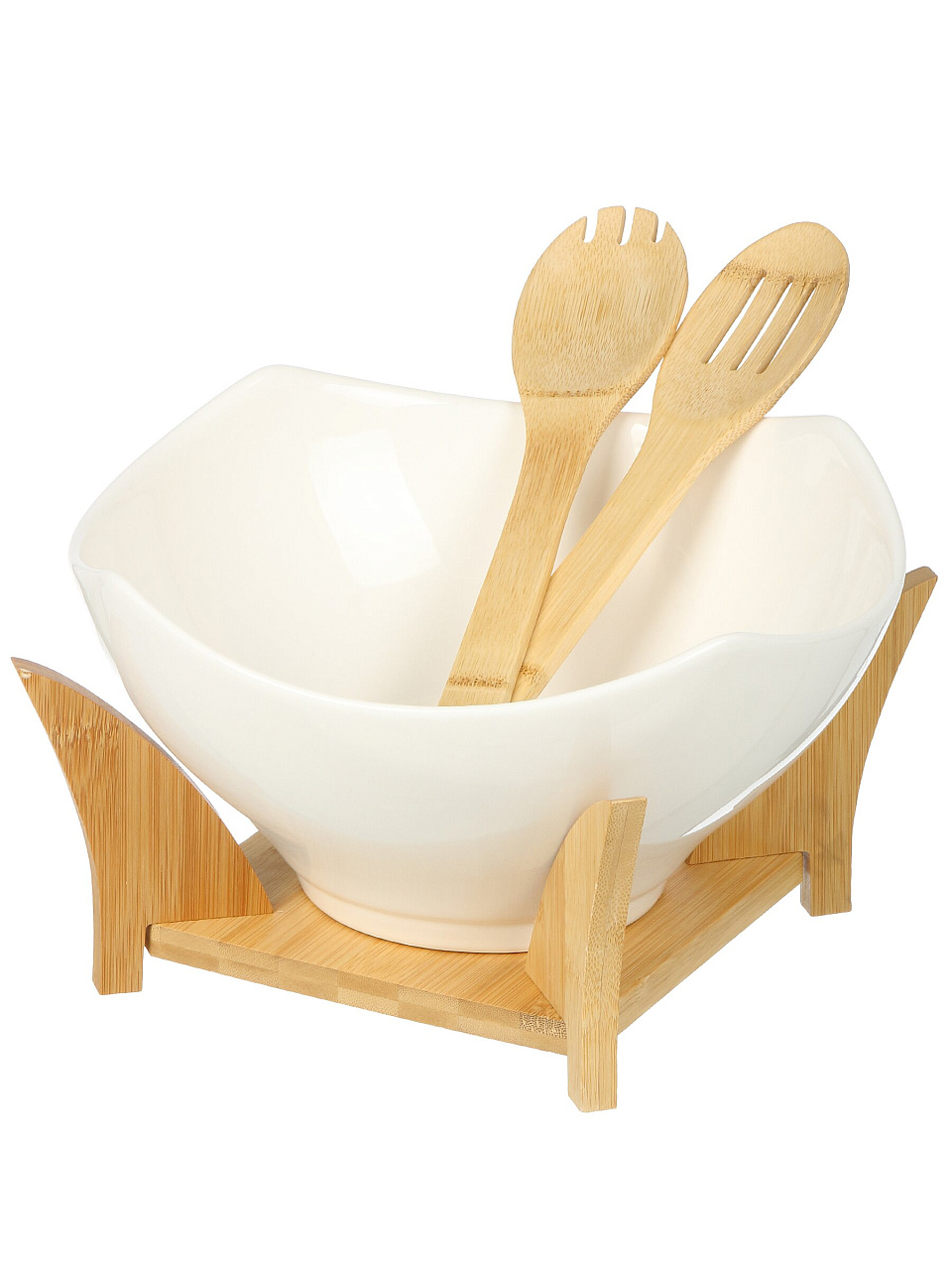 Салатник керамика квадратный 26х13 см, 2.85 л, 4 предмета, на бамбуковой подставке — стильное решение для сервировки и хранения, которое подчеркнёт ваш вкус и упростит быт.