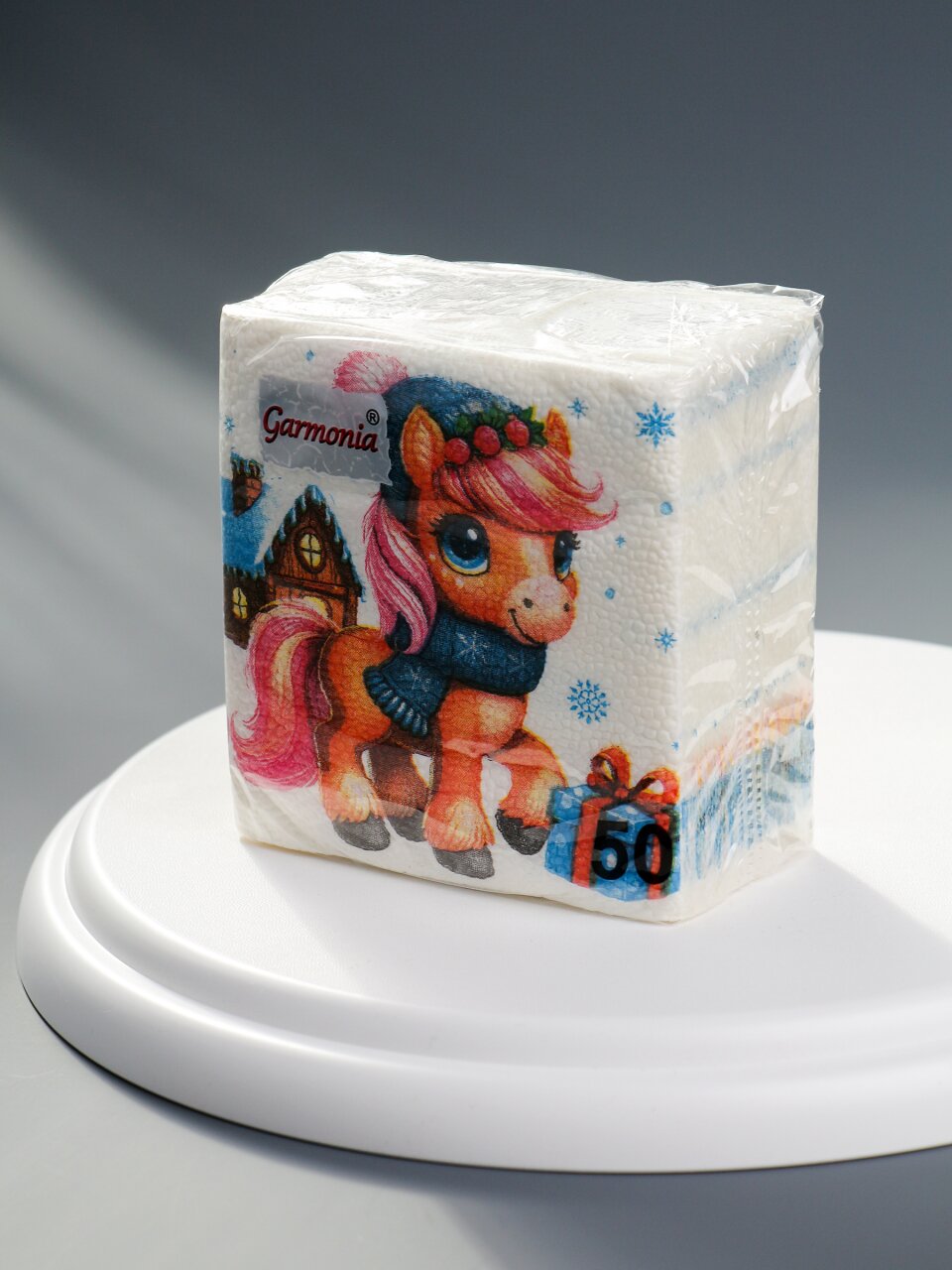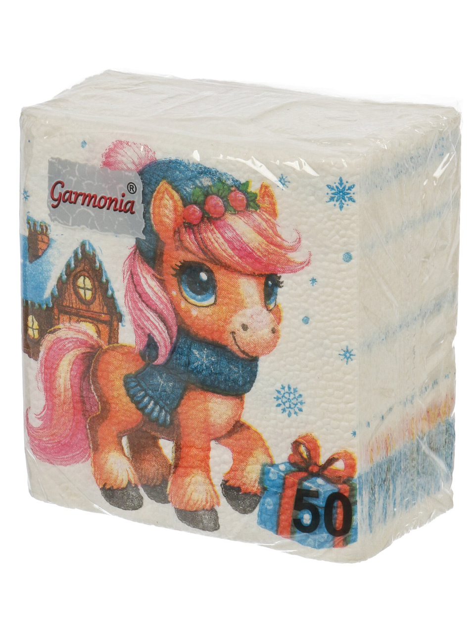 Салфетки бумажные Гармония Цвета «Лошадка», 50 шт — стильный новогодний акцент для праздничного стола, выгодно купить для дома и подарка.