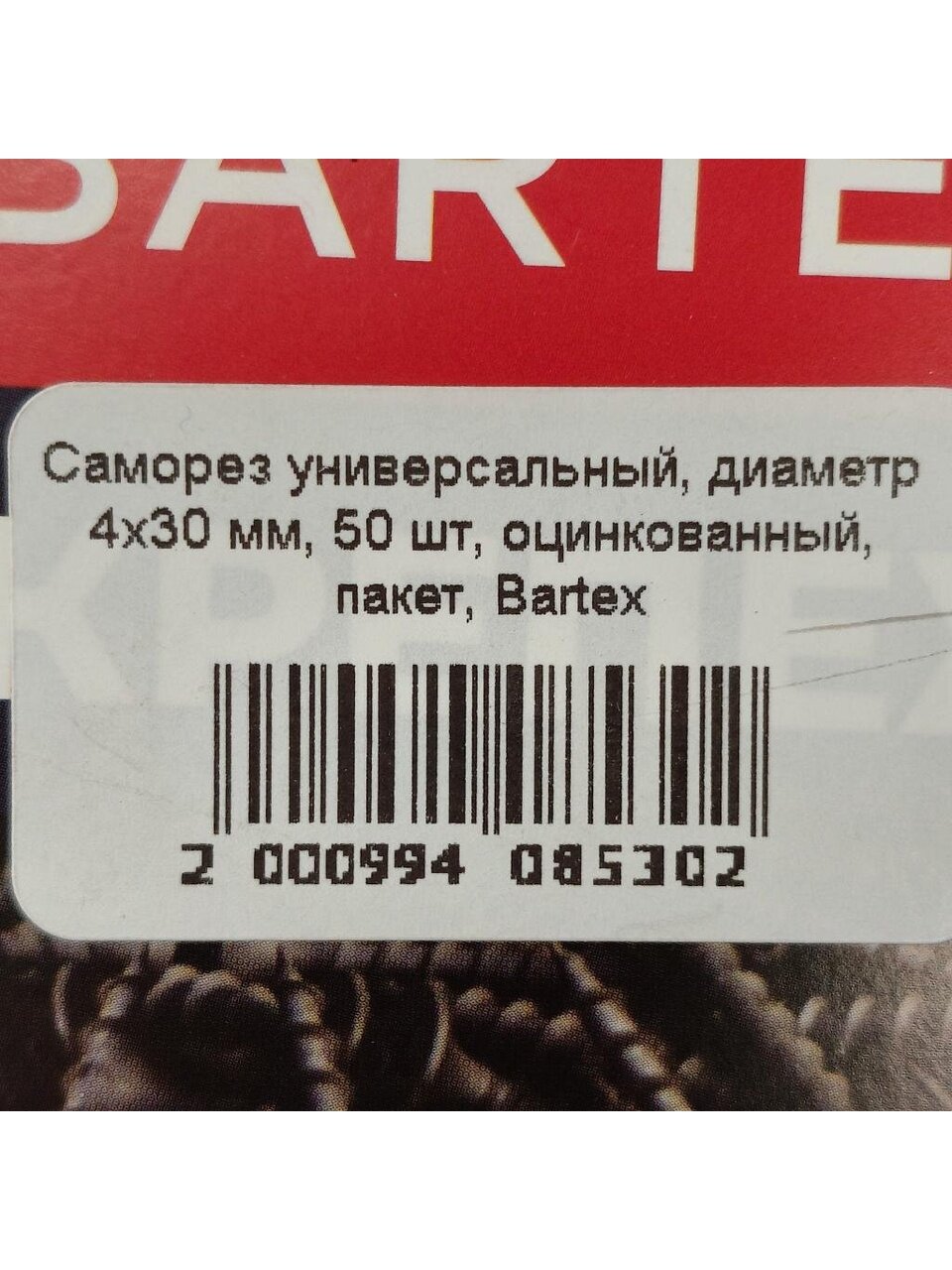 Вы можете приобрести «Саморез универсальный, диаметр 4х30 мм, 50 шт, оцинкованный, пакет, Bartex» и другие товары в нашем интернет-магазине в Твери по низким ценам и с бесплатным самовывозом.