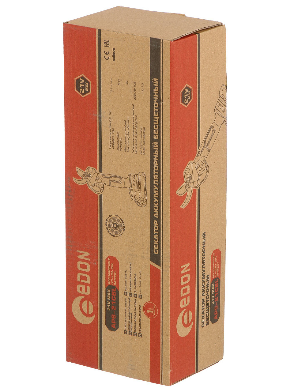 Секатор аккумуляторный 30 мм, 21 В, 2 Ач, бесщеточный, Edon, APS-21CBL, 40616