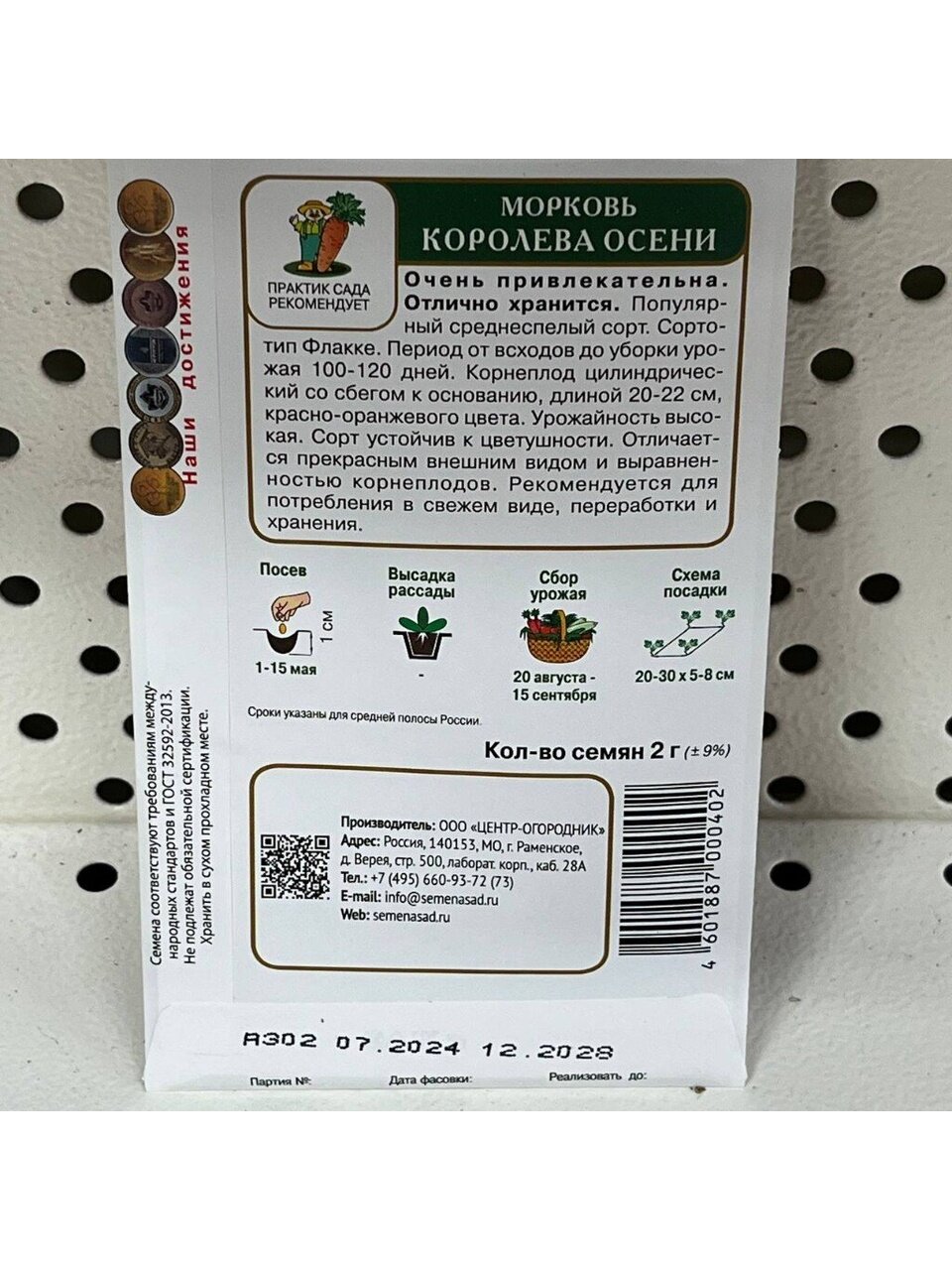 Вы можете приобрести «Семена Морковь, Королева Осени, 2 г, цветная упаковка, Поиск» и другие товары в нашем интернет-магазине в Астрахани по низким ценам и с бесплатным самовывозом.