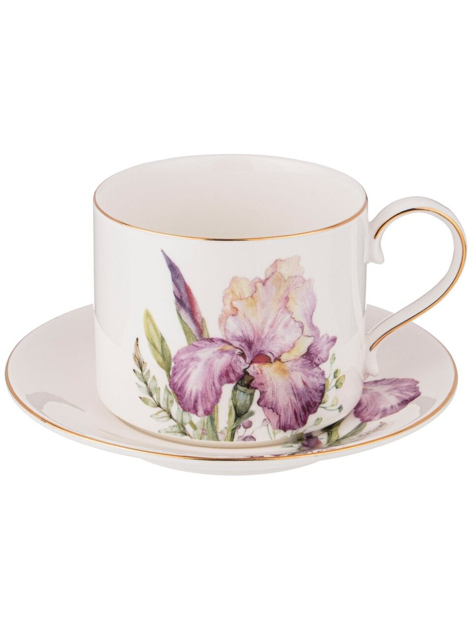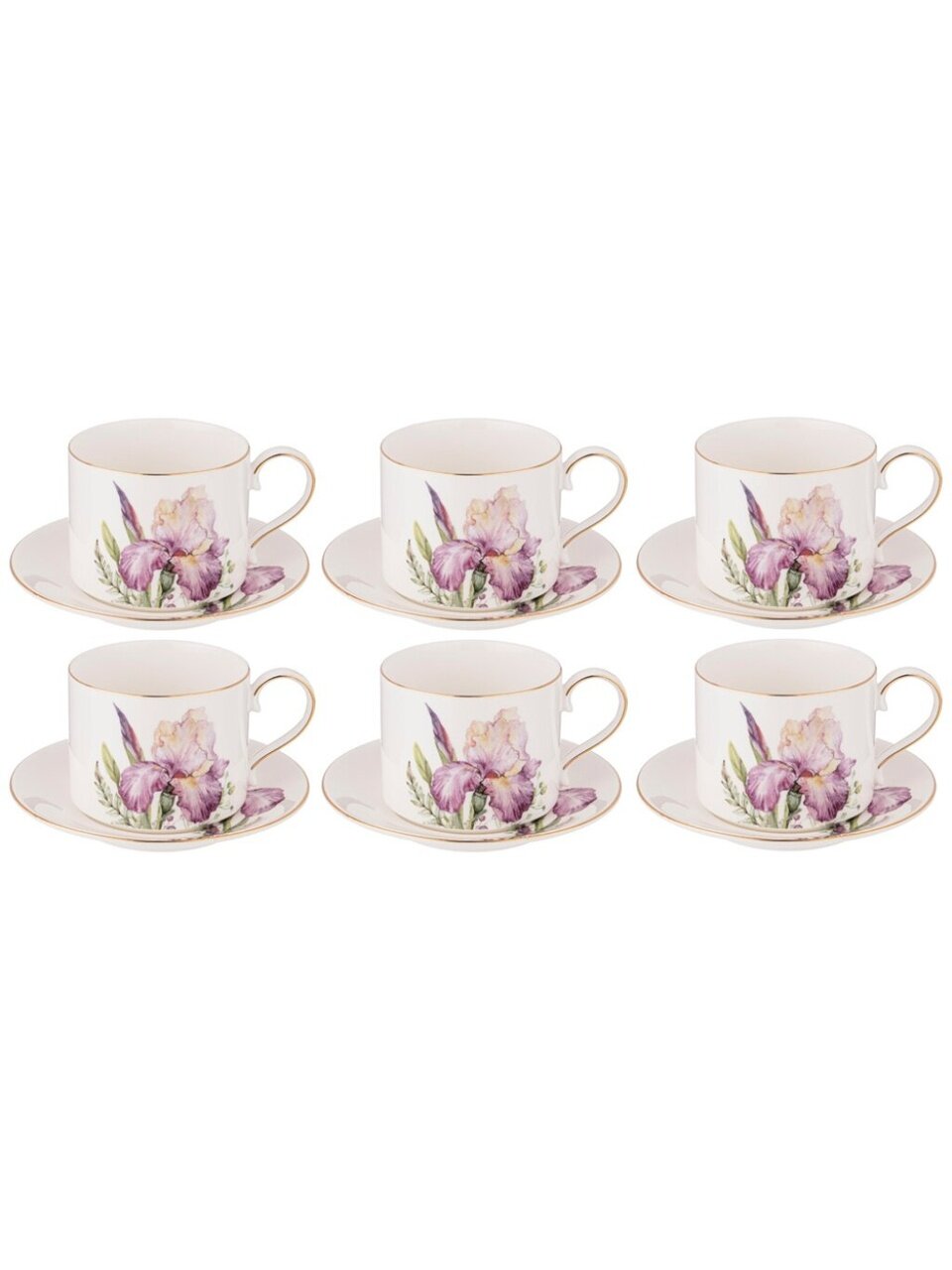 Набор чайный фарфор Lefard Irises на 6 персон: стильный подарок и уютные чаепития, 14 предметов, сиреневый, в подарочной упаковке