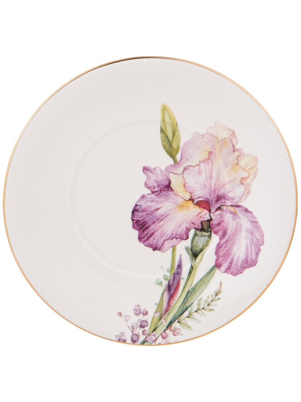 - Уникальный дизайн с цветочным рисунком и золотой каймой — эффектный акцент для сервировки