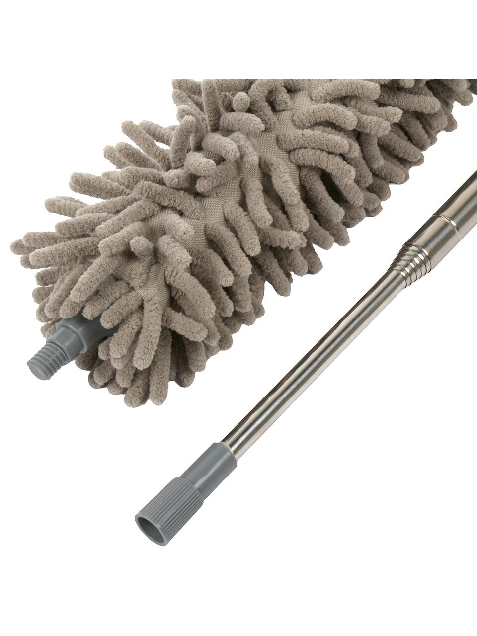 Данная модель с телескопической ручкой позволяет быстро и безопасно убрать пыль за шкафами, под потолком и в углах, не используя стремянку или табурет.