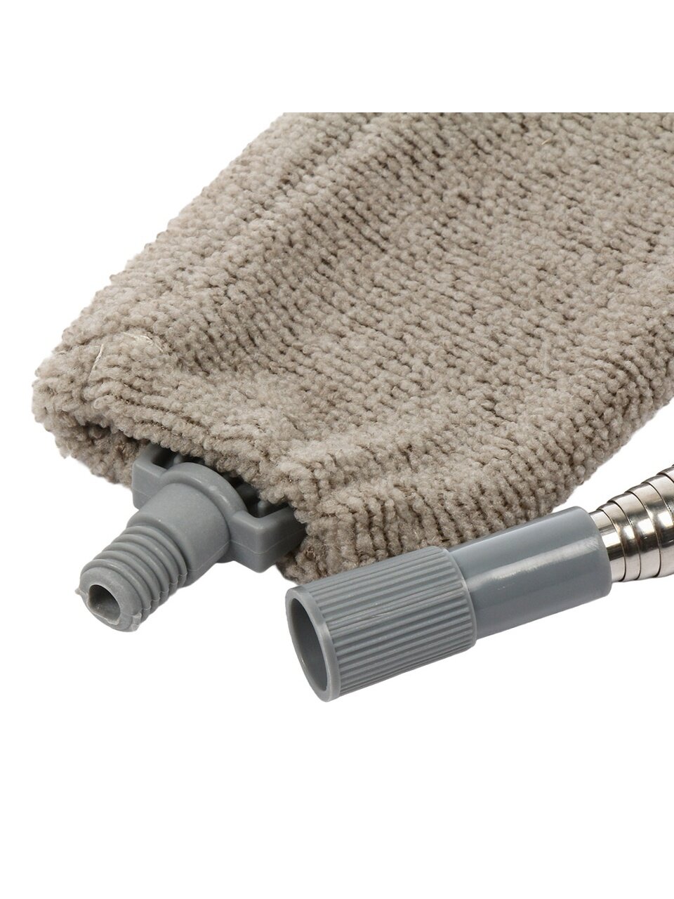 Длина регулируется от 70 до 280 см — удобно для уборки как низких, так и высоких поверхностей. Материал — полиэстер и нержавеющая сталь.