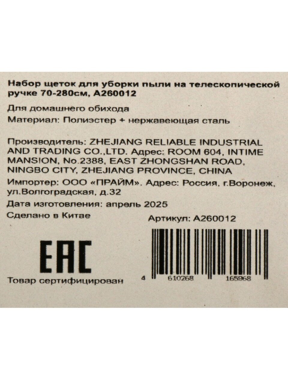 Щетки для уборки пыли на телескопической ручке 70-280 см A260012 — легкое решение для чистоты в труднодоступных местах. Удобно, быстро, без лишних усилий!