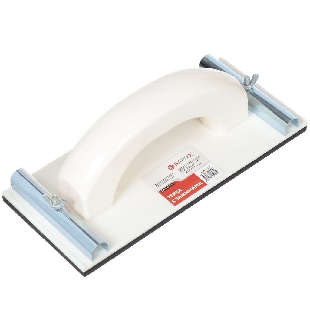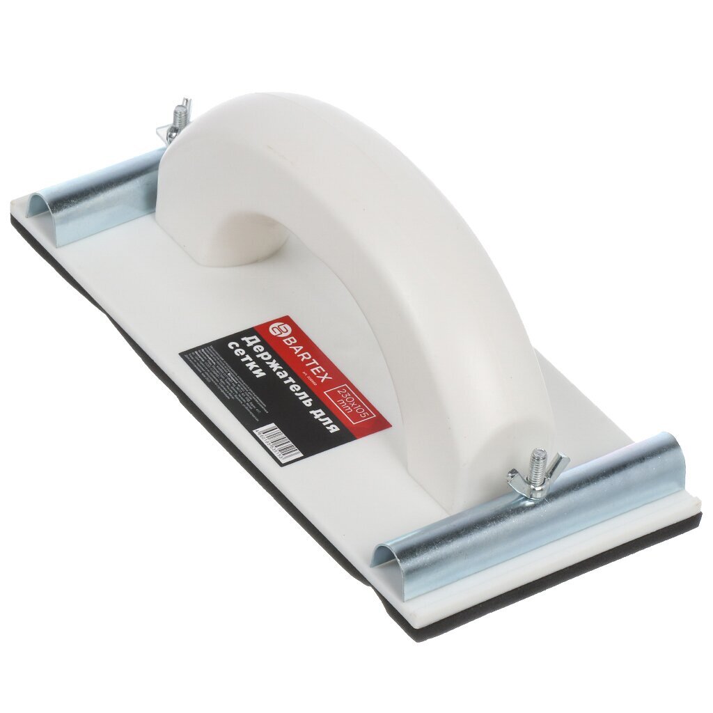 Металлический сеткодержатель используется для выравнивания поверхностей после штукатурки или шпатлевки, для снятия различных покрытий или загрязнений. Абразивная сетка или шлифлист фиксируются с помощью металлических зажимов. Утолщенная пластиковая рукоятка обеспечивает удобный и надежный хват. Платформа имеет резиновое покрытие, которое позволяет избежать скольжения полотна.