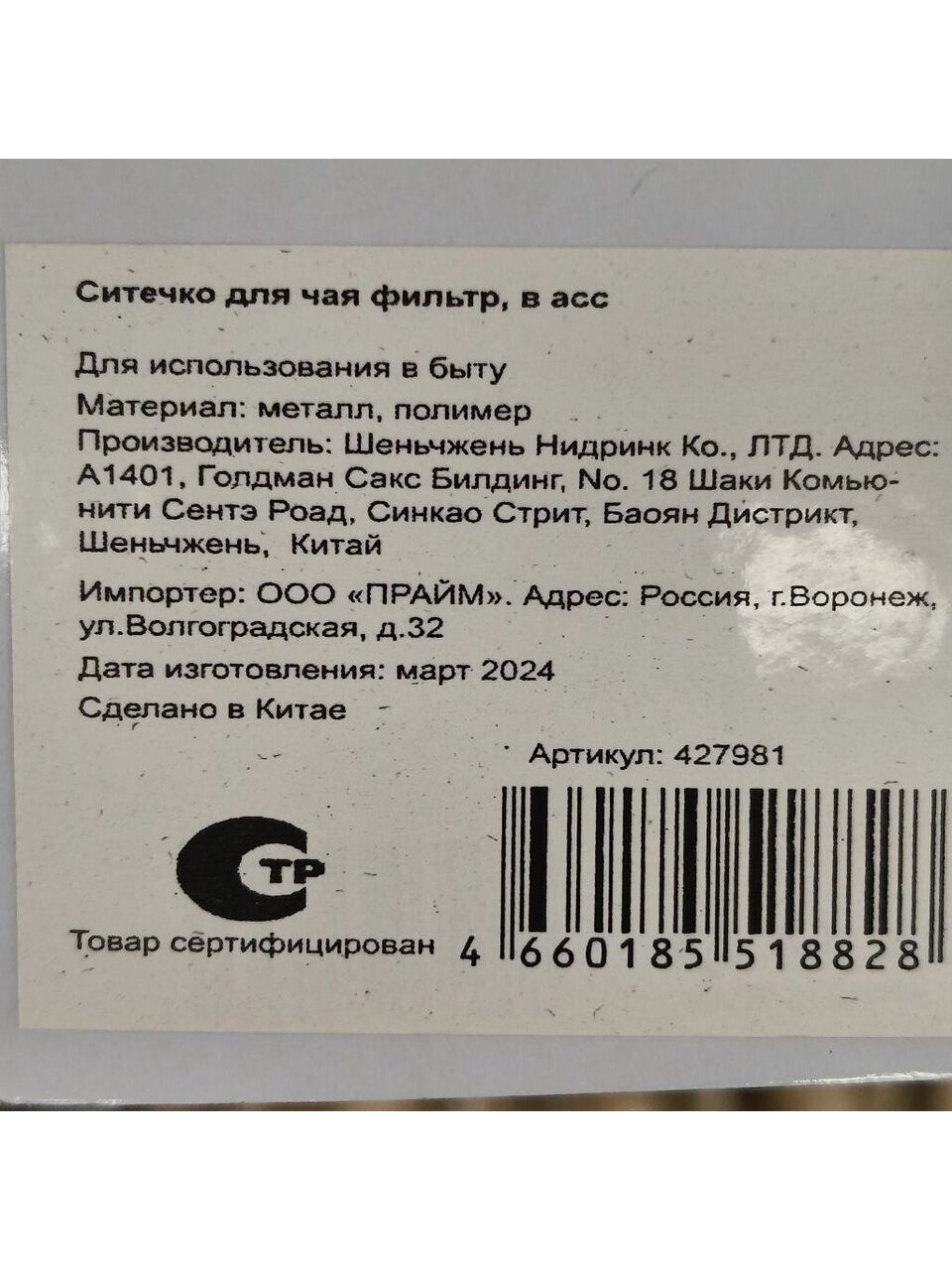 Ситечко-фильтр имеет удобную конструкцию, его можно надеть на бортик чашки и легко оттуда снять. Корпус изделия изготовлен из коррозионностойкой стали, держатель из пластмассы. Металл не вступает в реакцию с пищевыми продуктами, не оставляет привкуса. Пластик выдерживает температуру горячего чая, не портится и не выделяет вредных веществ.