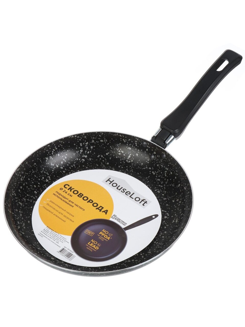 Сковорода HouseLoft 24 см: антипригарное покрытие, долговечный алюминий, стиль «черный гранит» — идеальный выбор для кухни и дачи.