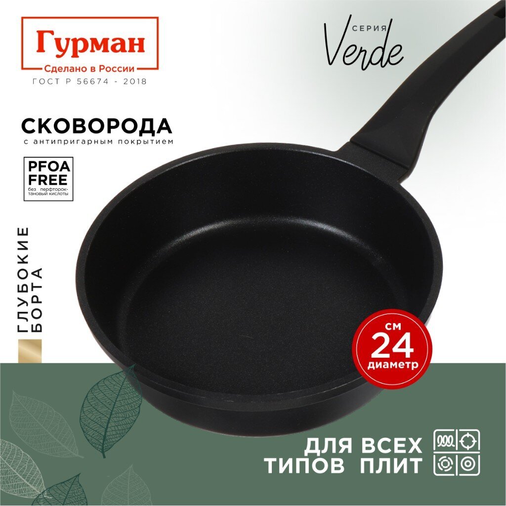 Вы можете приобрести «Сковорода литой алюминий, 24 см, антипригарное покрытие, Гурман, Verde, черная, индукция, ГМ2401 ВИ» и другие товары в нашем интернет-магазине в Санкт-Петербургe по низким ценам и с бесплатным самовывозом.