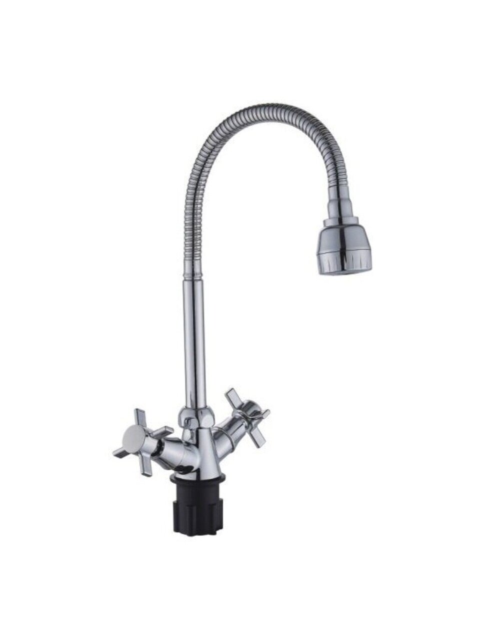 Корпус выполнен из цинкового сплава с глянцевым хромированием, а запорный механизм — керамическая кран-букса. Такая комбинация обеспечивает устойчивость к коррозии и износу, увеличивая срок эксплуатации по сравнению с пластиковыми аналогами.