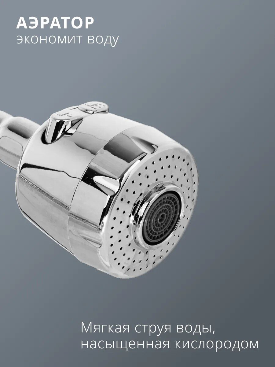 Гибкий смеситель для кухни Aqwin A58211: современный дизайн, хром, долговечный цинковый сплав, удобство и свобода движения по доступной цене.