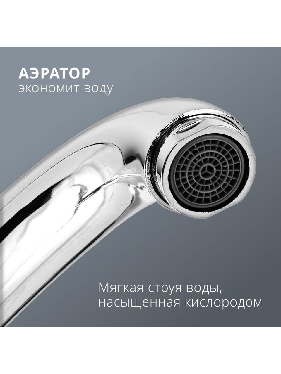 - Длинный поворотный излив 20,7 см из цинкового сплава — удобно мыть крупную посуду, срок службы увеличен