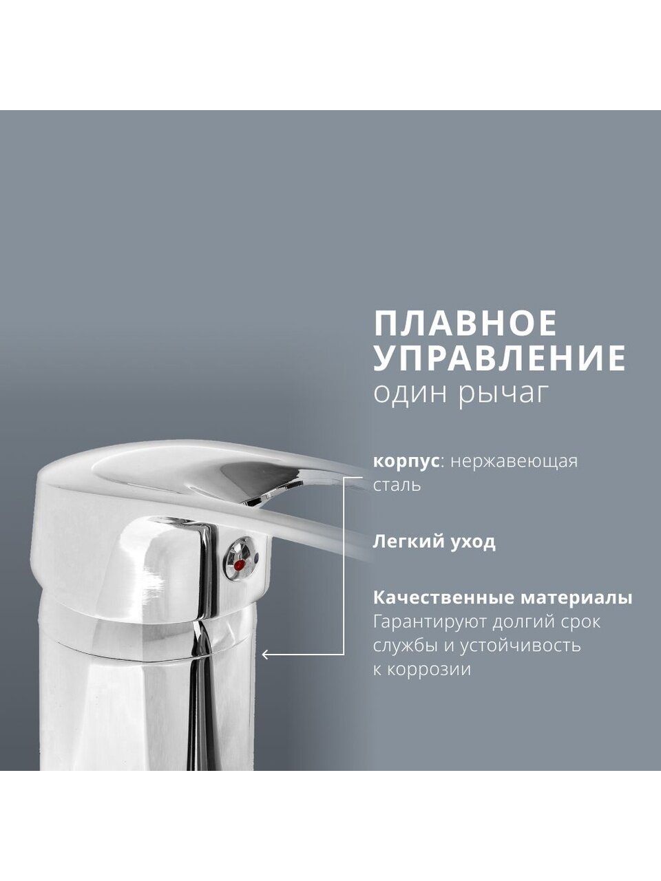 - Современный дизайн и надежный керамический картридж — плавное управление и отсутствие подтеканий