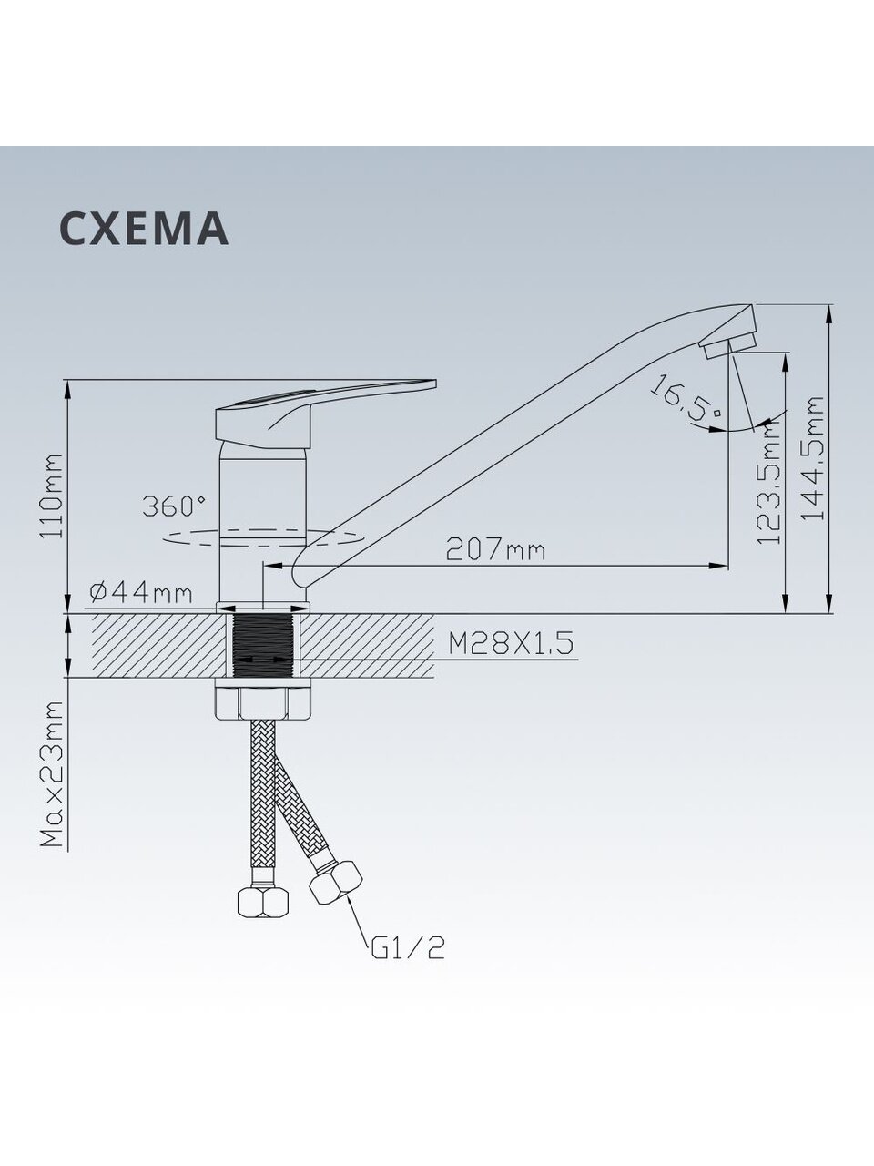 - Подходит для городской кухни, дачи, квартиры — универсальный монтаж через одно отверстие, гибкая подводка