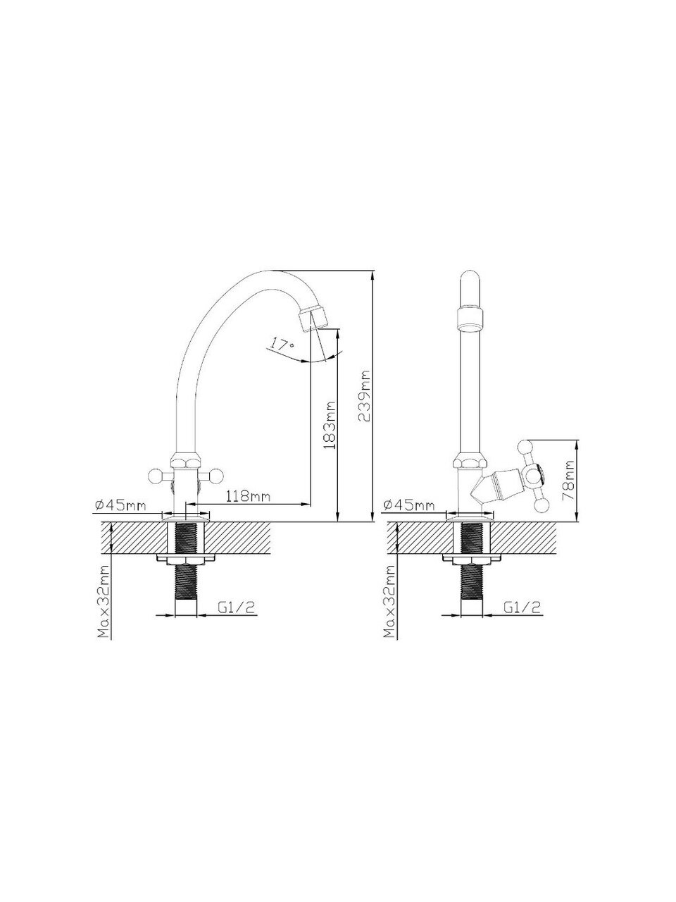 Смеситель для кухни, Cronwil, с кран-буксой, для одного типа воды, CB330-41