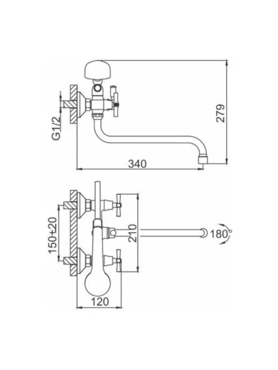 Длина поворотного излива составляет 34 см, что обеспечивает удобство при использовании для ванны и душа, а также позволяет легко набирать воду в ёмкости различного размера.
