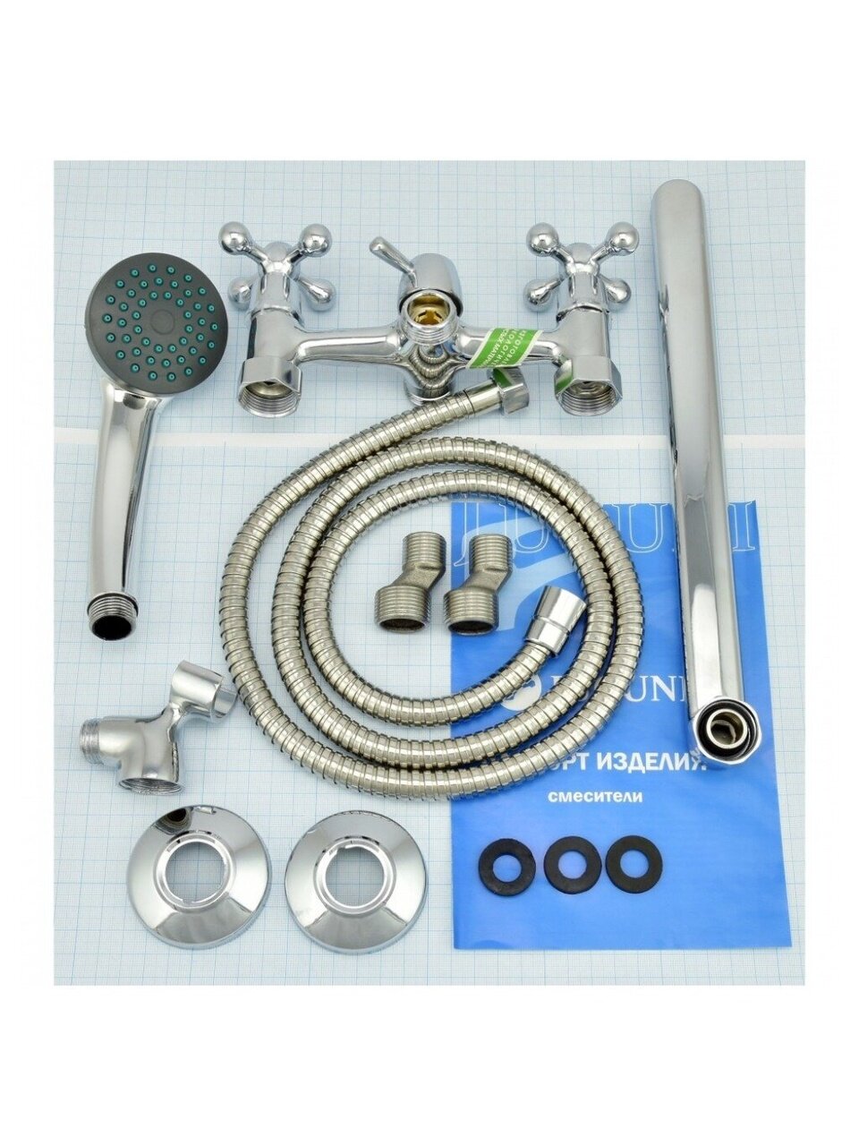 Смеситель для ванны Juguni 0402.656A — надежное решение с хромированным покрытием, длинным поворотным изливом 30 см и функцией душа для вашего дома или дачи.