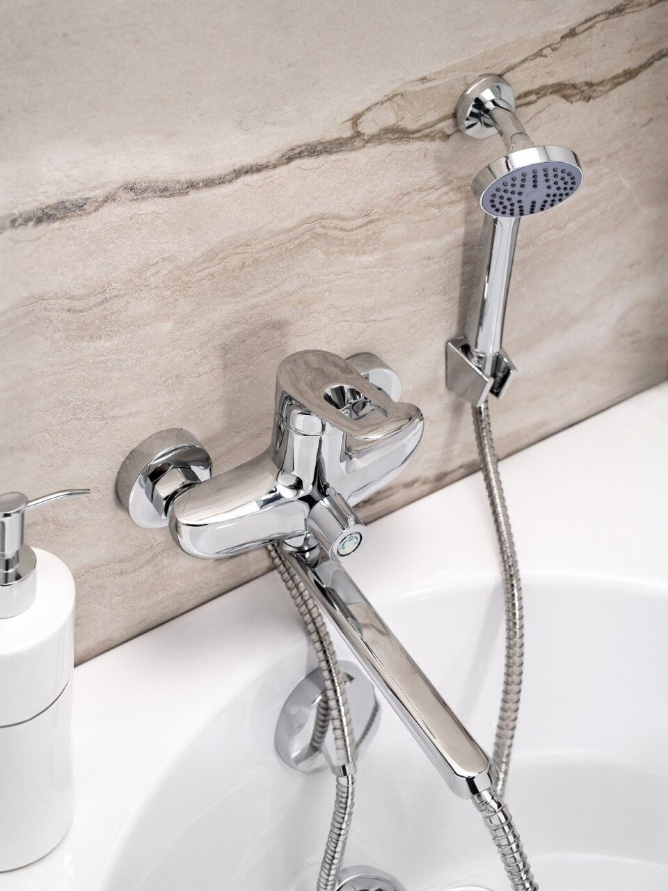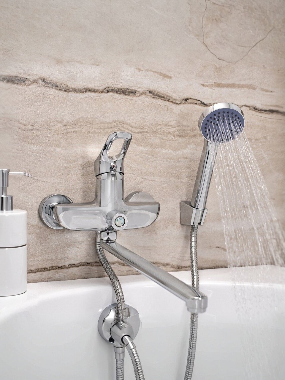 Если вы выбираете, какой смеситель лучше для ванны с душем или ищете, как выбрать смеситель с надежным механизмом, обратите внимание на эту модель — она оснащена аэратором, защитой от излома и жесткой подводкой. В отличие от бюджетных аналогов, здесь реализована система плавного переключения режимов и устойчивое крепление на 2 отверстия с гайкой, что облегчает монтаж и обслуживание. Смеситель совместим с большинством душевых шлангов (стандарт 1/2"), подходит для вертикального и настенного монтажа.