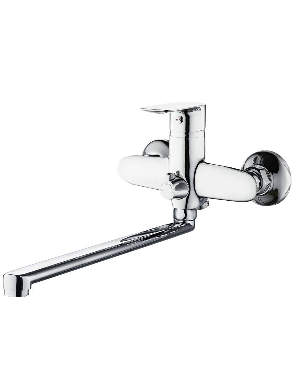 Смеситель для ванны РМС SL133-006E — это современный однорычажный вариант с длинным поворотным изливом (35 см), который подходит для ванны, душа и комплексных решений «ванна с душем». Корпус изготовлен из прочного цинкового сплава с глянцевым хром-покрытием, устойчивым к износу и коррозии. Керамический картридж обеспечивает плавное переключение и надежную герметичность, что особенно важно при частом использовании и перепадах давления воды.