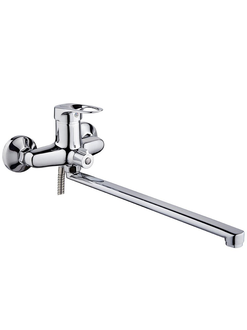 Смеситель для ванны РМС SL55-006E — долговечный хромированный корпус, керамический картридж, длинный излив 30 см. Решение для комфортного душа и ванны.
