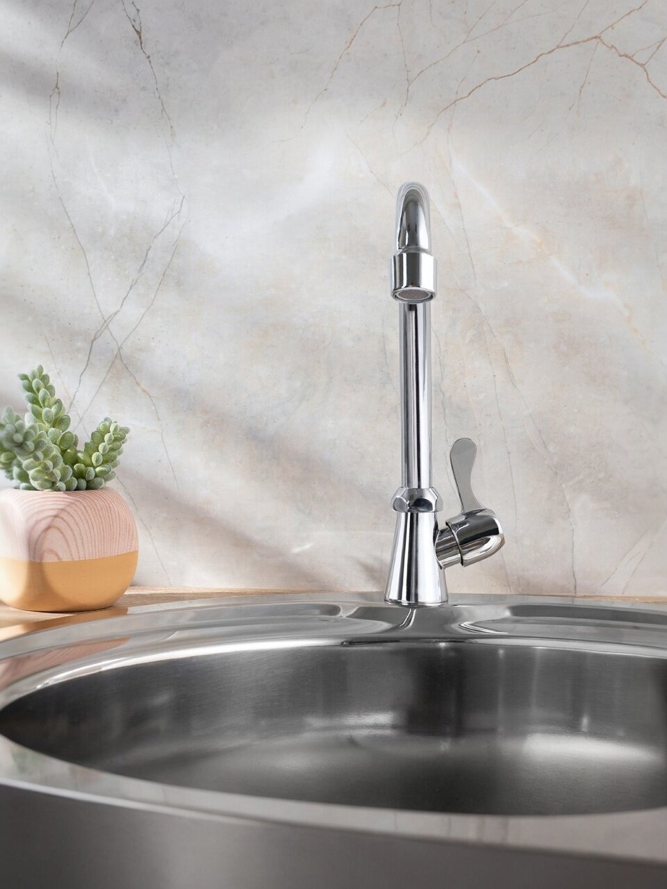 Если вы ищете, как выбрать смеситель с долговечным механизмом, обратите внимание на керамическую кран-буксу — она обеспечивает плавное открытие и закрытие воды, устойчива к износу и предотвращает протечки. Такой смеситель отлично подойдет для стандартных кухонных раковин с одним отверстием (диаметр 25 мм) и станет удачным решением для тех, кто ценит практичность и стиль.