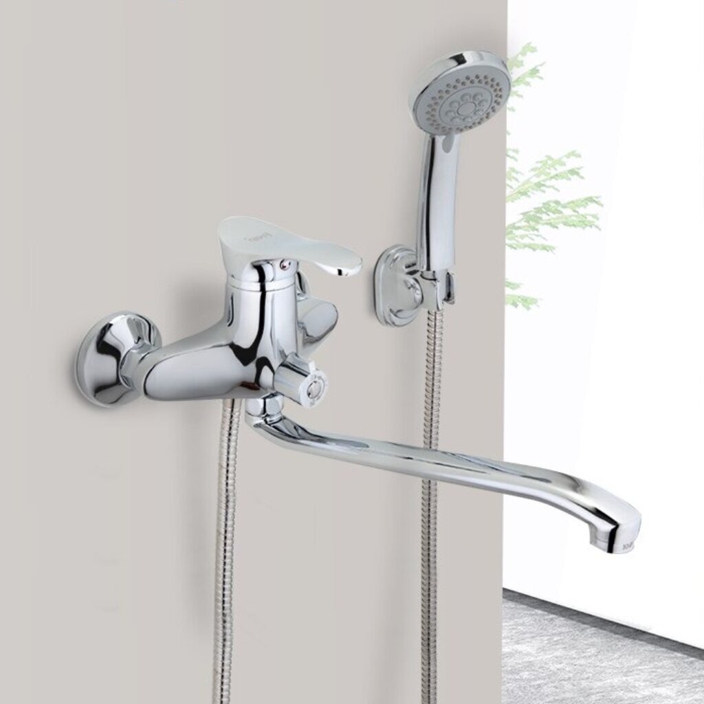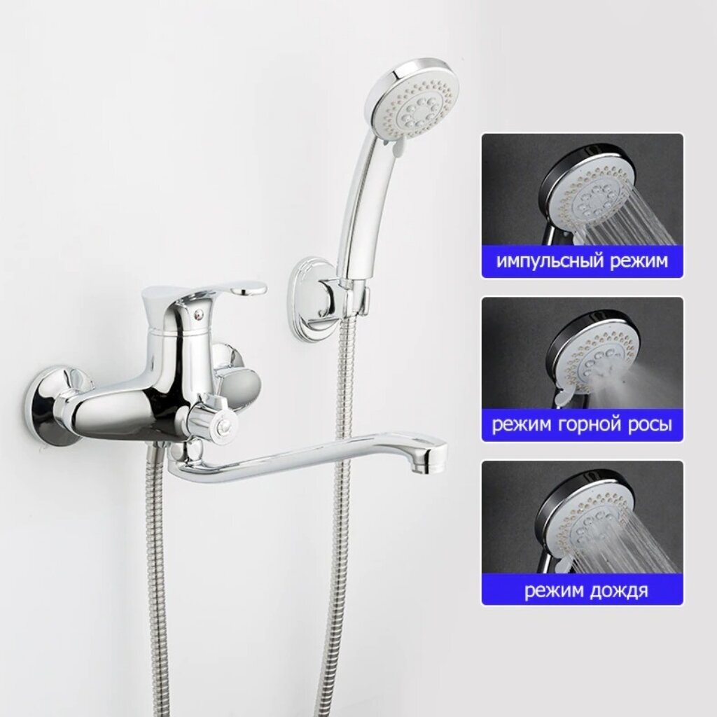 Модель универсальна: подходит для ванны, душа, а также для установки в доме, квартире или на даче. Длинный поворотный излив удобен для наполнения ёмкостей и мытья.