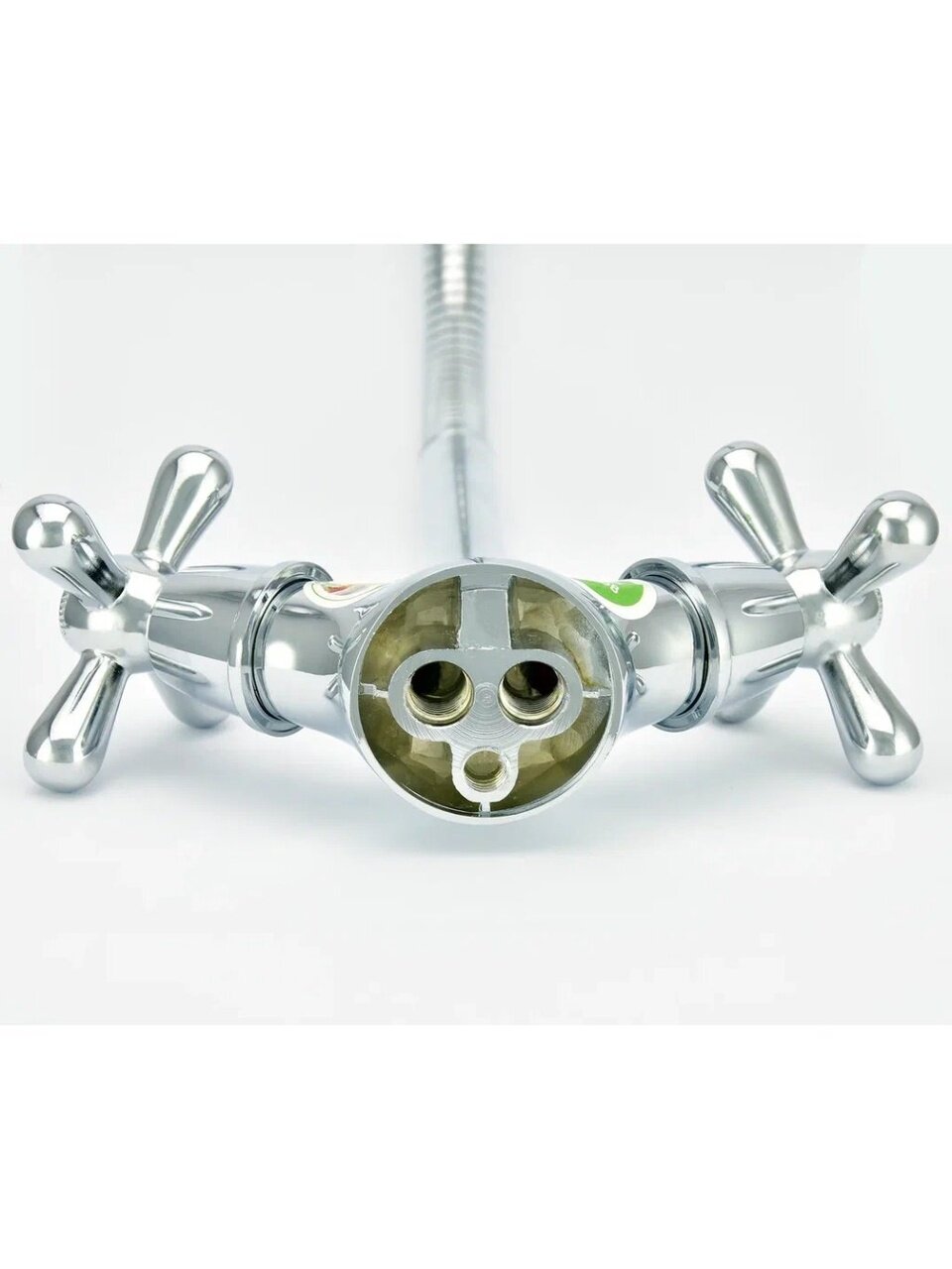 Корпус изготовлен из силумина с глянцевым хромированным покрытием. Это обеспечивает устойчивость к коррозии и долговечность при ежедневном использовании.