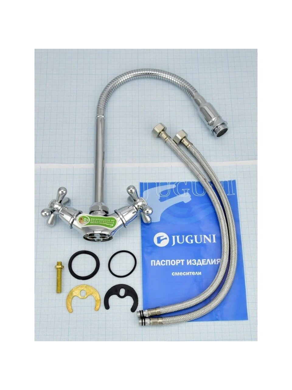 Смеситель для кухни Juguni с гибким изливом — оптимальное решение для современной кухни: долговечный силумин, глянцевый хром, удобство управления и стильный дизайн.