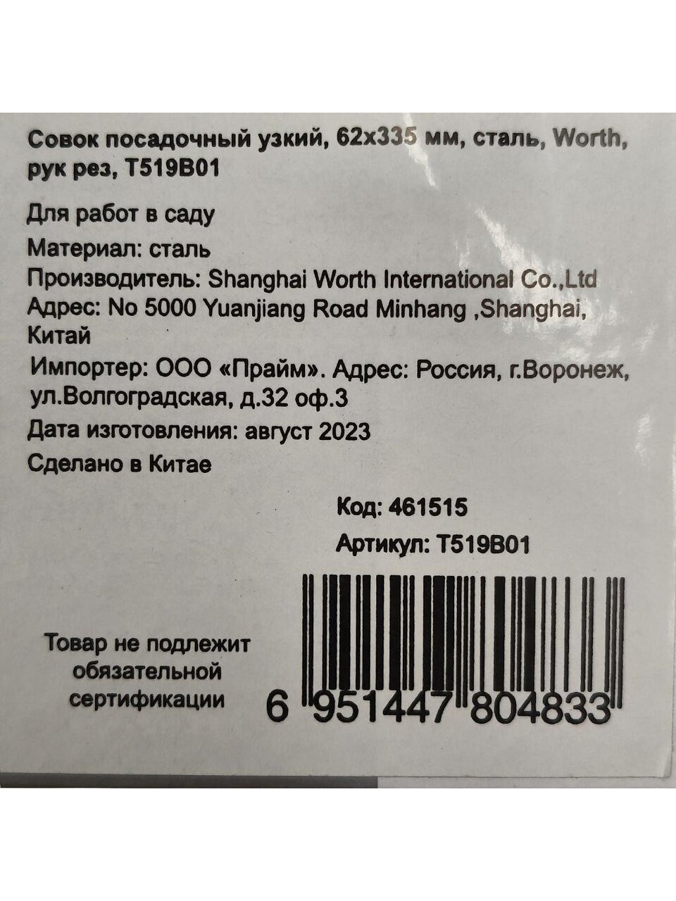 Вы можете приобрести «Совок посадочный узкий, 62х335 мм, сталь, рукоятка резина, Worth, T519B01» и другие товары в нашем интернет-магазине в Брянске по низким ценам и с бесплатным самовывозом.