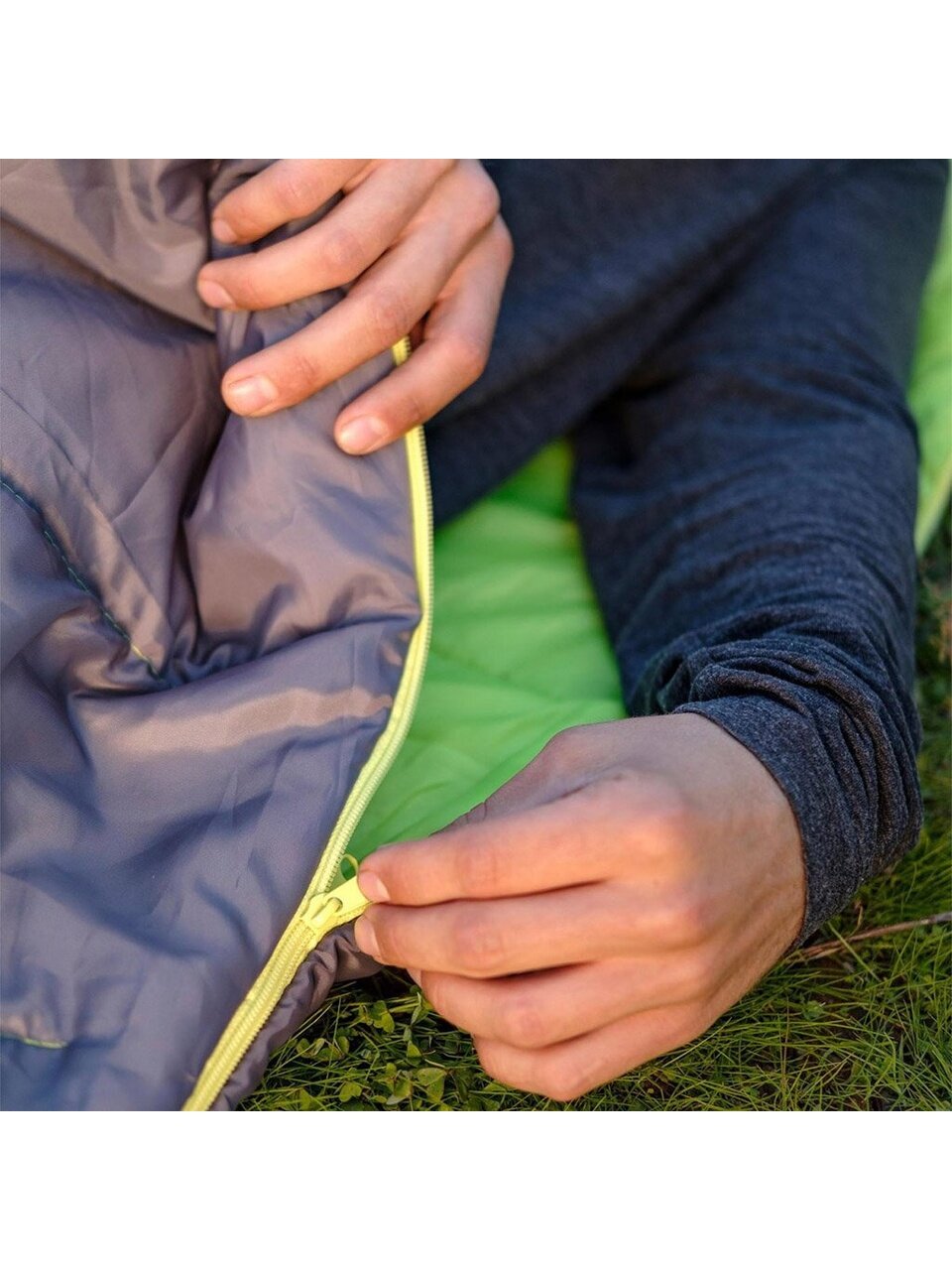 Кокон - отличается анатомической формой: широкий в плечах, сужающийся к ногам. Благодаря этому спальный мешок лучше облегает тело и сохраняет тепло. Все швы с внешней и внутренней сторон смещены друг относительно друга, что также препятствует потере тепла. Спальный мешок упакован в сумку для переноски. Габариты сумки (ДхВ): 33х15 см.