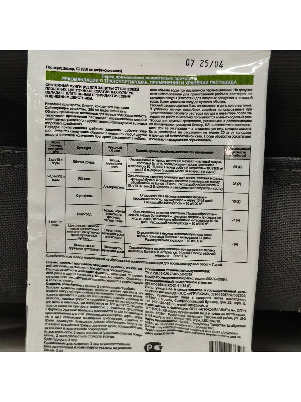 Дискор – фунгицид системного и контактного действия, предназначенный защищать садовые посадки от разного рода заболеваний.