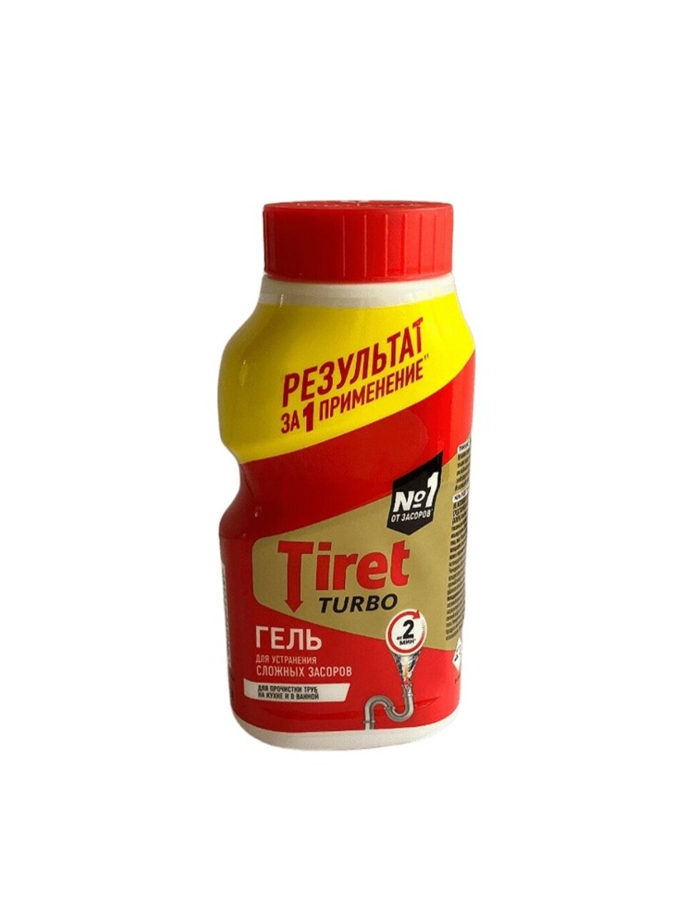 Средство для прочистки канализационных труб TIRET Turbo эффективно против микробов, устраняет засоры и неприятный запах. Предназначено для металлических и пластиковых труб.
