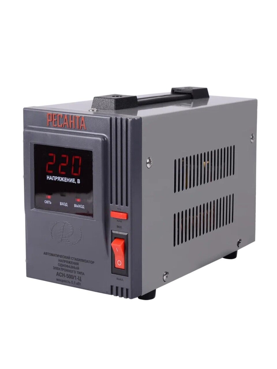 Ресанта ACH-500/1-Ц — однофазный стабилизатор напряжения электронного типа. Он оснащен микропроцессорным управлением и цифровым индикатором напряжения. За счет использования высококачественных комплектующих прибор исключительно надежен и имеет увеличенный рабочий ресурс.