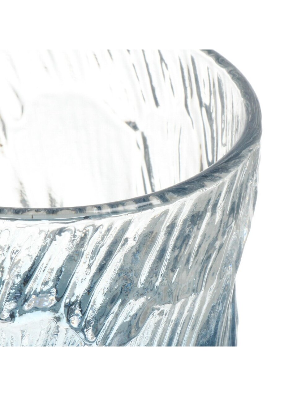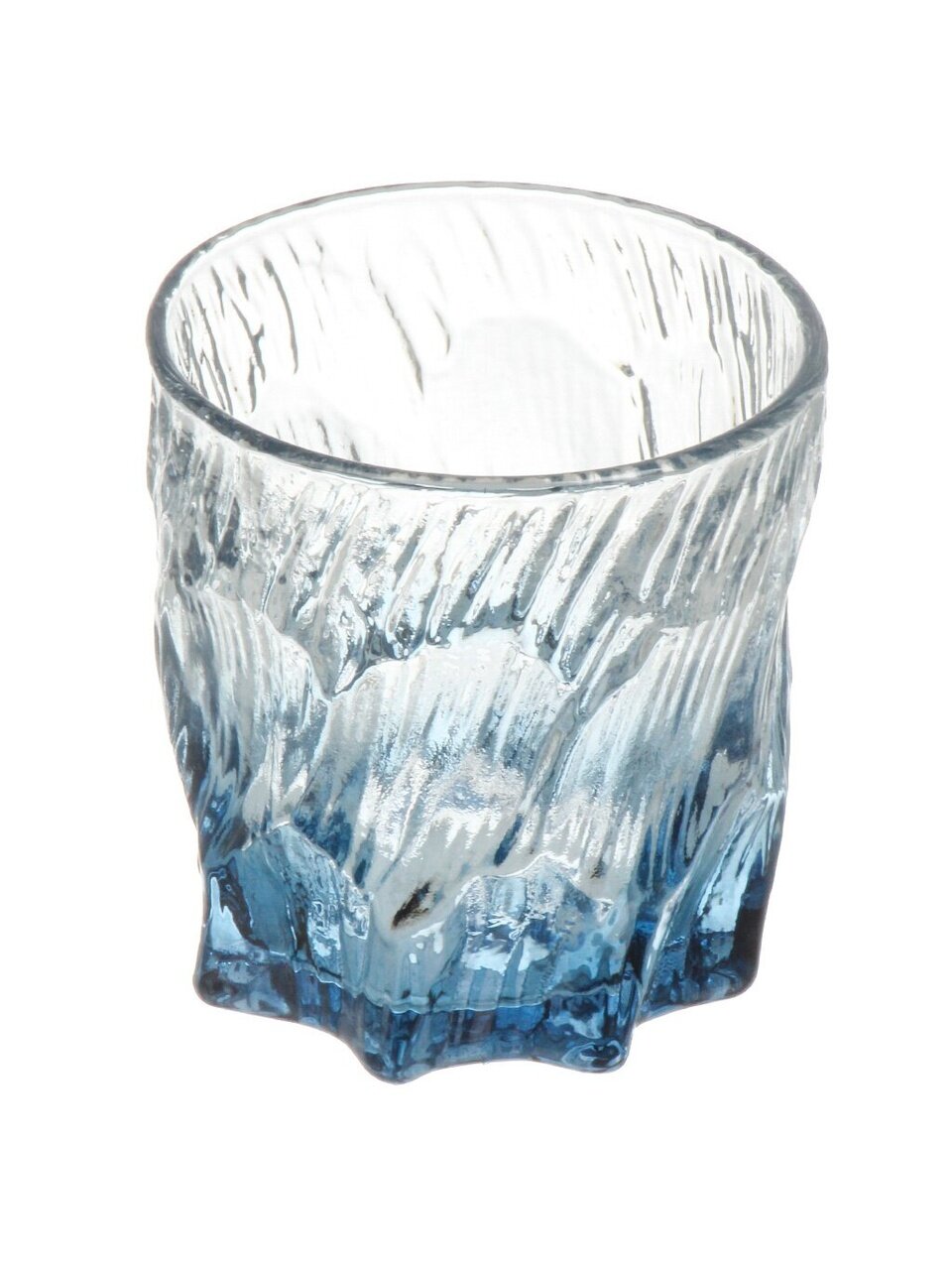 Это низкий и широкий стакан типа рокс, объемом 230 мл, с серо-голубым витражным декором, выполненный из прочного стекла.