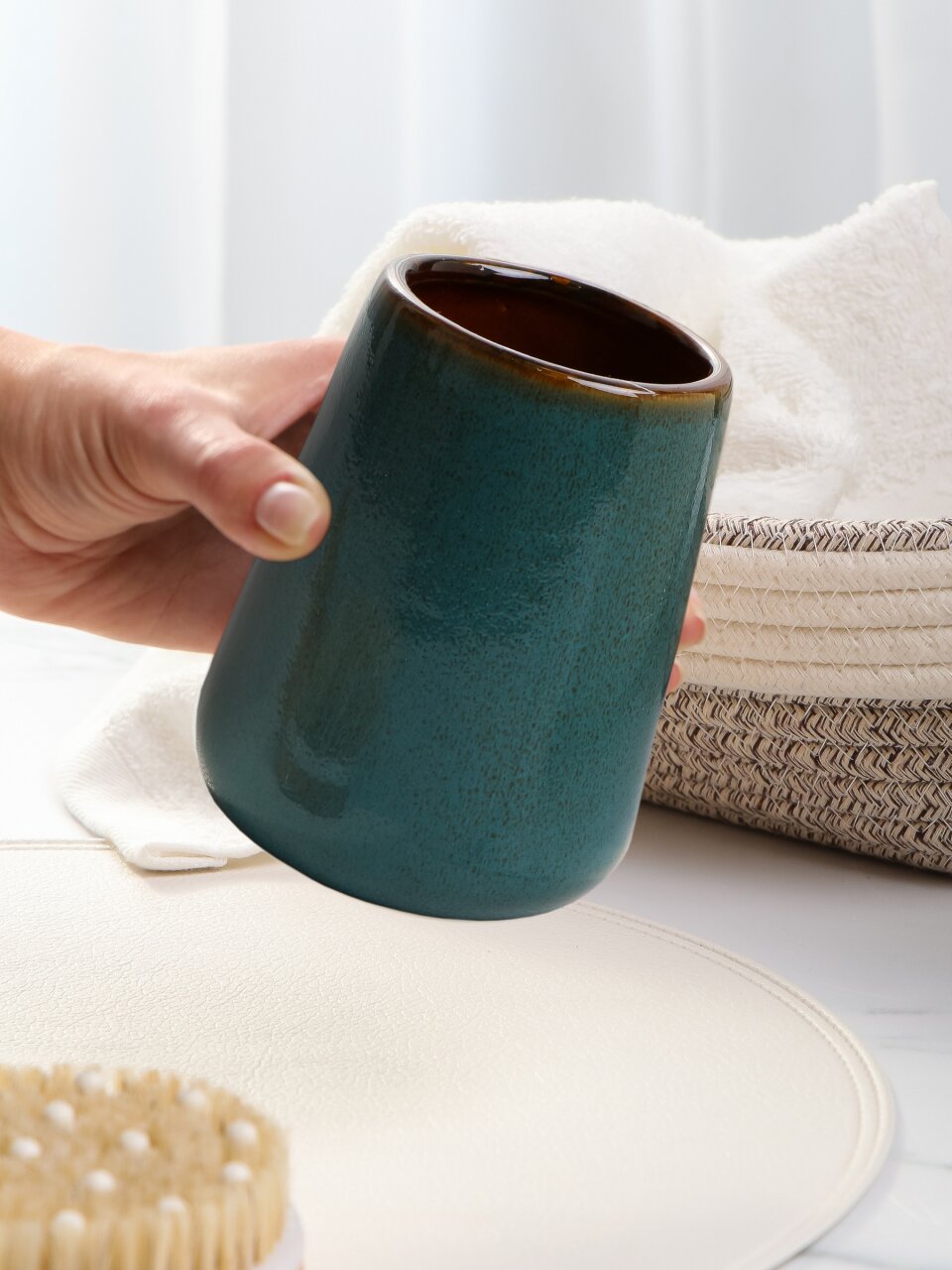 Покупатели часто спрашивают, как выбрать стакан для зубных щеток: обратите внимание на материал — керамика не впитывает влагу и проста в уходе. В отличие от пластиковых аналогов, керамический стакан сохраняет блеск и не тускнеет со временем. Для каких случаев подходит этот аксессуар? Он отлично впишется в интерьер городской квартиры, загородного дома или станет практичным подарком для новоселья.