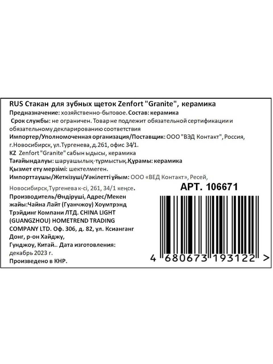 Вы можете приобрести «Стакан для зубных щеток, 10х8х8 см, керамика, Zenfort, Granite, 106671» и другие товары в нашем интернет-магазине в Иваново по низким ценам и с бесплатным самовывозом.
