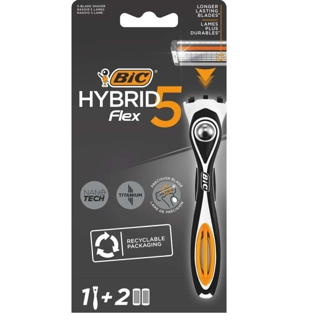 С мужской бритвенной системой BIC Hybrid 5 Flex можно долго не беспокоиться о покупке новых лезвий. В новой упаковке, сделанной из перерабатываемых материалов, вы найдёте две сменные кассеты, которые легко заменить простым нажатием кнопки.